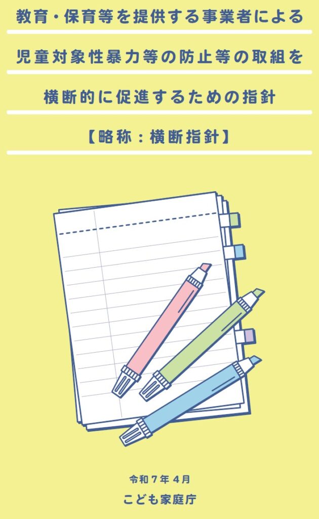 こども性暴力防止法の施行に向けて、教育・保育施設の運営者の皆さんにとって重要な資料が「横断指針」です。